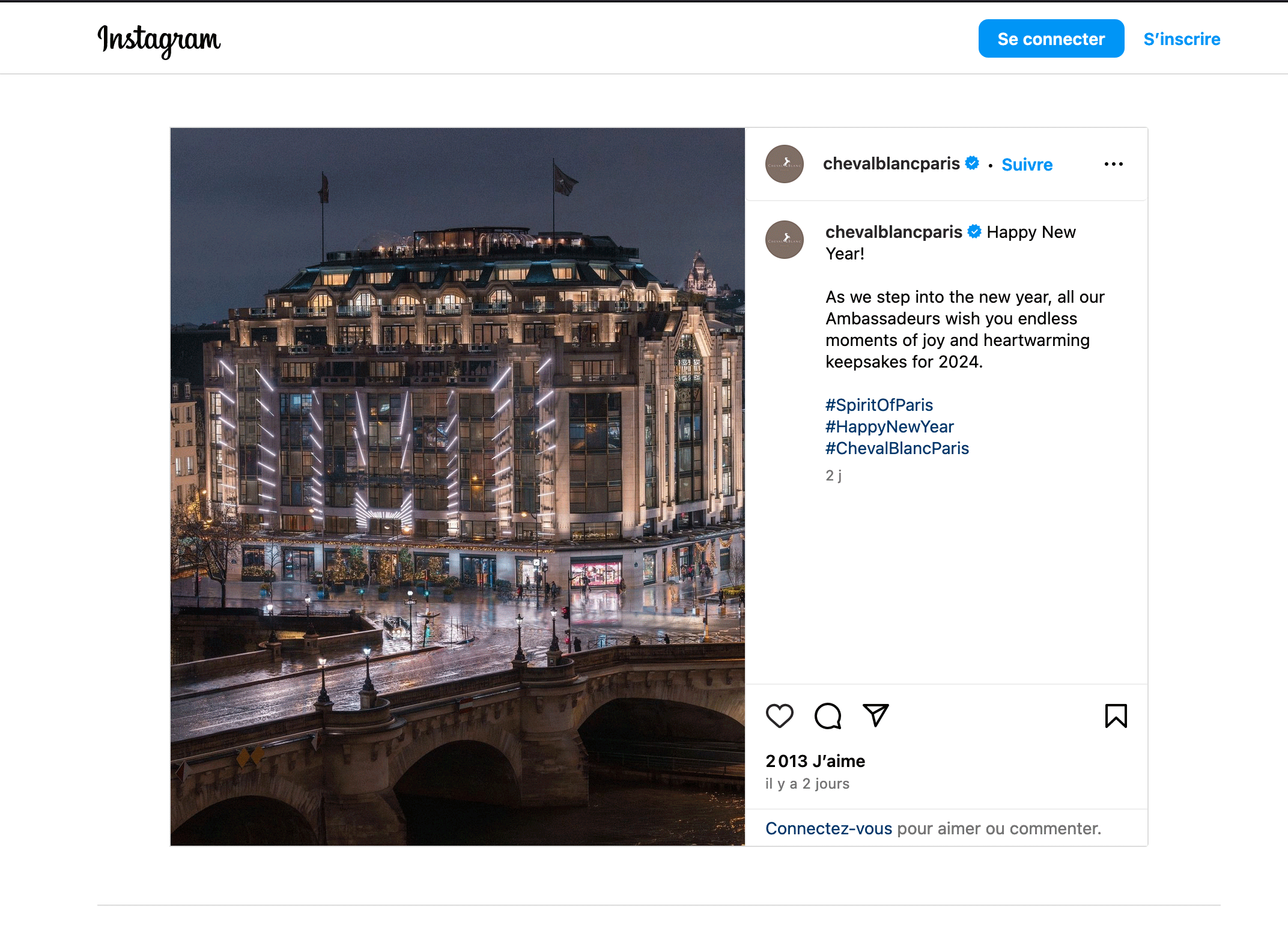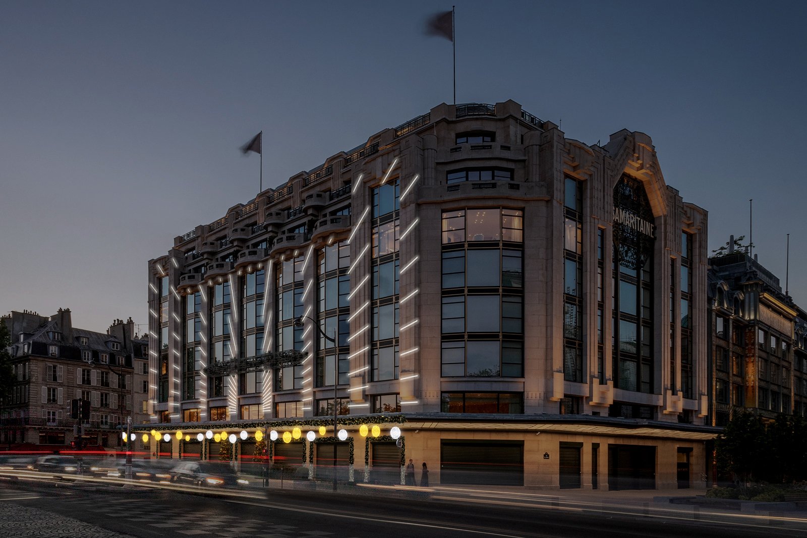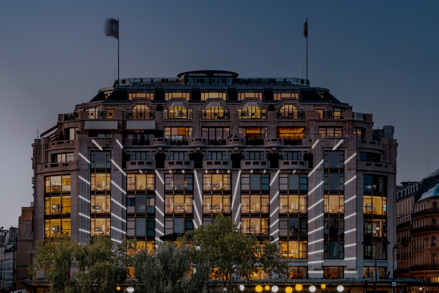 Illuminations de Noël sur l’immeuble historique de la Samaritaine, qui abrite l’hôtel de luxe Cheval Blanc.